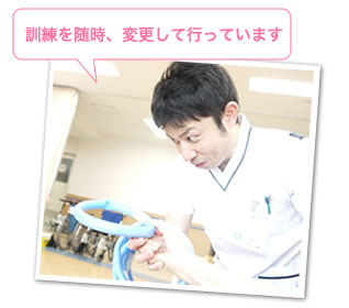 リハビリ室で運動や練習が可能な患者様はリハビリ室にて実施します。